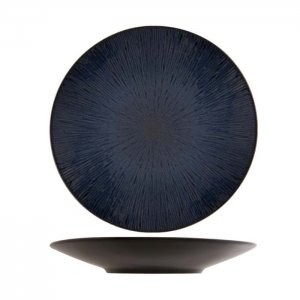 Sada barevných talířů ve světlém odstínu. GALASSIA je kolekce keramického nádobí ve dvou odlišných barevných variacích: bílé a modré. Sbíhající se linie na…