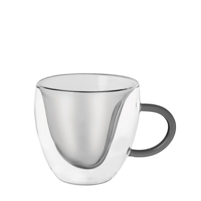 Dvoustěnný hrnek DOUBLE srdce 0,33 l šedý, sada 2ks
