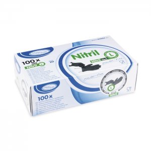 Nitrilové rukavice velikost L, 100 ks černé, nepudrované.